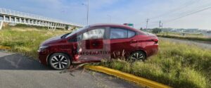 El impacto fue tan fuerte que el sedan acabó arriba de la guarnición de la carretera.