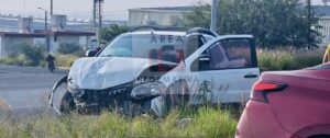 En ese sitio el conductor de una camioneta Adveture, RAM, blanca mismo que era acompañado por una menor de edad acabó con el frente destrozado.