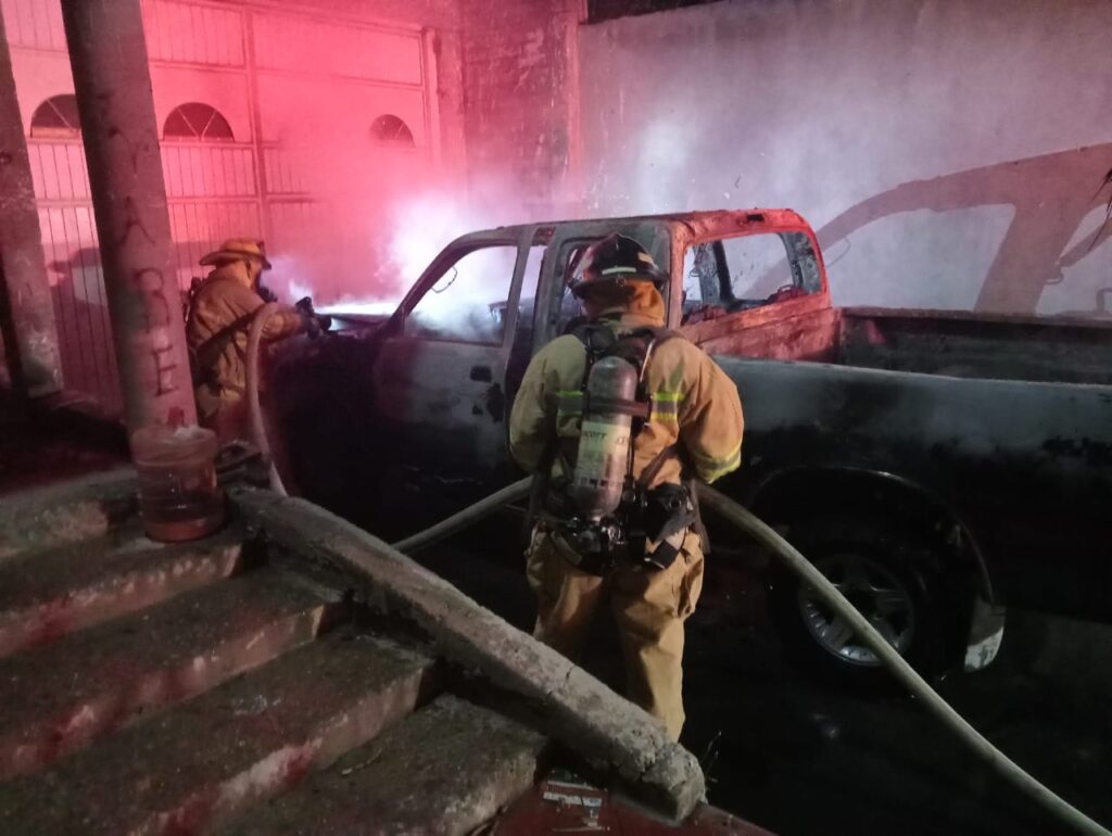 La tragedia tuvo lugar en la calle Avestruces de la colonia Las Aves; la camioneta ardia en llamas dentro del inmueble.
