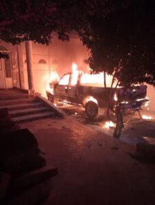 FRESNILLO.- Este sábado por la noche una camioneta acabó en cenizas dentro de una cochera.