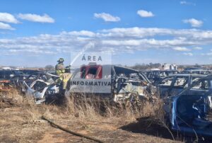 El fuego estaba fuera de control y consumía los vehículos abandonados y depositados en el lugar.