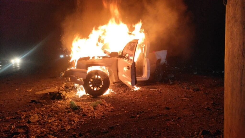 GUADALUPE.- Dos personas murieron calcinadas en un accidente vial que acabó con incendio.