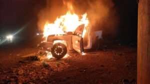 El fugo fue apagado y después fue acordonada la periferia de donde quedó la camioneta.