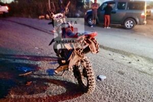Fue una camioneta roja que impactó la motlcicleta tipo cross manejada por un hombre.