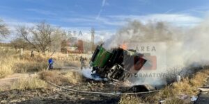 Mientras que el lesionado conductor de la trilladora, fue llevado a un hospital.