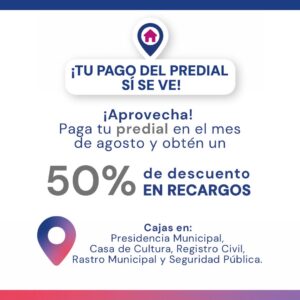 • Los pagos se podrán realizar en las cajas instaladas en la Presidencia Municipal, Casa
