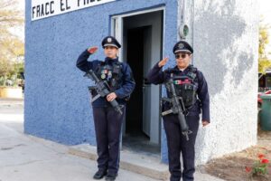 El alcalde Javier Torres Rodríguez ha entregado, en una segunda etapa, las casetas ubicadas en las colonias Las Maravillas, Solidaridad, Indeco y Fraccionamiento Los Fresnos, para cumplir con el compromiso de reforzar la seguridad en el municipio.