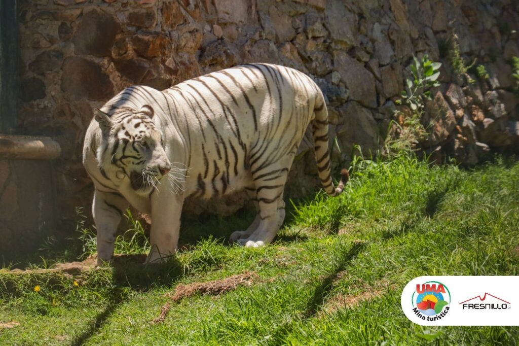 Minera Fresnillo da la bienvenida a Junior, un majestuoso tigre de bengala albino rescatado por Profepa