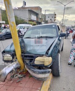 En ese sitio una camioneta Ford, Explorer, verde subió al camellón y chocó con una luminaria.