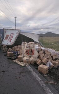 Afortunadamente el chofer resultó ileso igual que sin daños la cabina del camión pues el que se desprendió fue el segundo remolque.