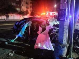 Mientras que Rafael quedó prensado entre los fierros retorcidos luego de haberse impactado en una pared y luego en un poste de la Comisión Federal de Electricidad (CFE).
