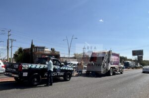 Fue en ese sitio que el conductor del camión recolector de basura propiedad del municipio impactó de lado a un automóvil Honda, gris manejado por una mujer.