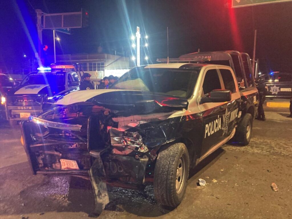 Fue en la avenida Macisgerial cerca a la colonia Las Huertas que ina camioneta chocó con una radiopatrulla de la Secretaría de Seguridad Pública Municipal (SSPM).