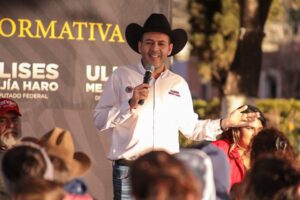 Durante este recorrido, Ulises Mejía Haro estuvo acompañado por Serafín Bermúdez y Mario Haro, referentes migrantes del sur del estado, con quienes abordó de manera directa los principales retos que enfrentan las comunidades de origen y la comunidad zacatecana que radica en Estados Unidos, particularmente en materia de representación política, desarrollo comunitario y fortalecimiento de los vínculos con las y los migrantes.