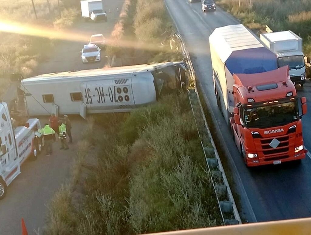 Fue poco después de las 5 de la mañana que el camión de pasajeros acabó volcado sobre la carretera federal 45.