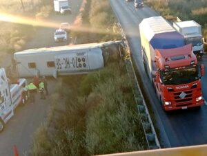 Fue a la altura de dicho municipio que el camión de pasajeros acabó volcado; desconociendo las causas.