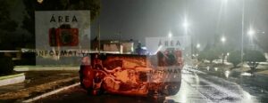 Fue este domingo por la madrugada que un automvil acabó volcado luego de que impactara un objeto fijo.